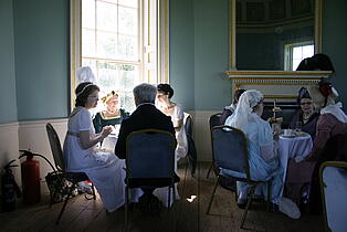 Wir hatten Tee im "Tower of the winds" in Shuugborough Hall bei Lichfield in England. Abends gab es Country dance im der Assembly Hall